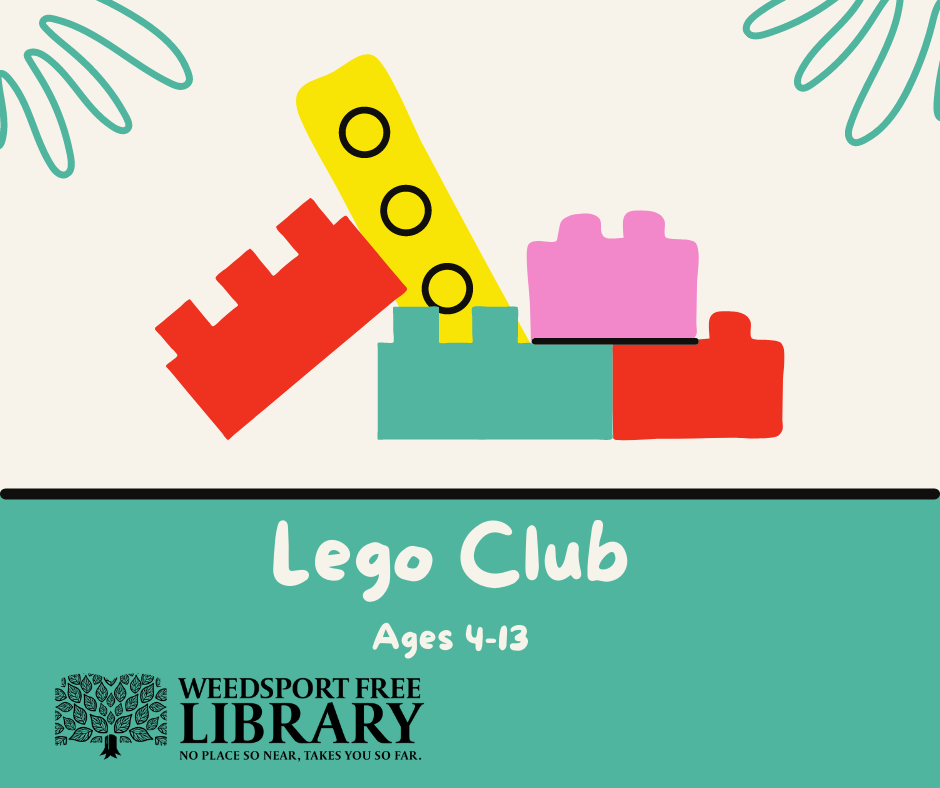 Lego Club Thursday, July 28, 2022 6:30 PM 7:30 PM 18:30 19:30 Weedsport Free Library 2795 East Brutus Street Weedsport, NY 13166 U.S. (map) Google Calendar ICS