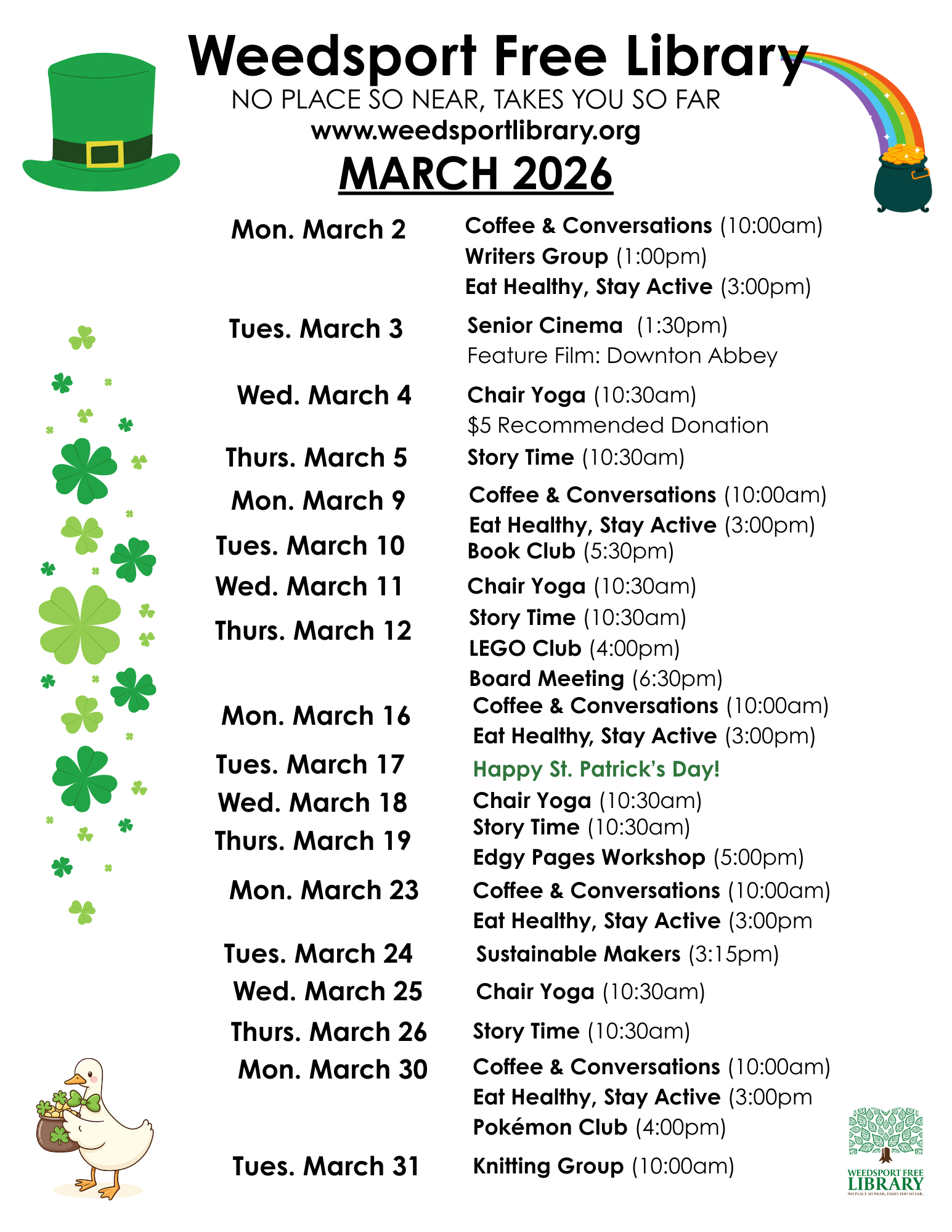 The Weedsport Free Library is an organization dedicated to providing facilities and materials for education, recreation, personal growth, and information to those residing in its service area.